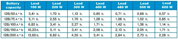 The formula for the battery discharge time is: the capacity of the power supply (battery) expressed in A*h divided by the consumer current in amperes A. That is, t = Cp / In. However, this will only be an absolute value, the actual value is somewhat less. Because the battery can be considered dead when its voltage drops to 11.8 volts and the discharge is exponential.