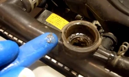 - opening the cap of the expansion tank or radiator, you will see a film of oil;