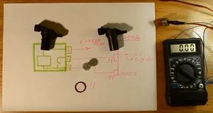 This method requires removing the sensor. You will need a power source (12V), wires, a multimeter, and a metal object.