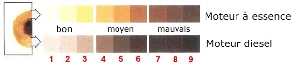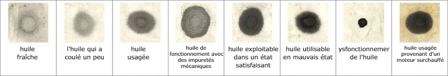 L'évaluation de la qualité de l'huile moteur se fait par la forme et l'apparence de la tache d'huile obtenue.