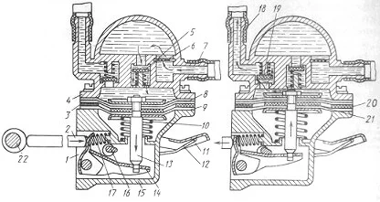 If the jet is weak, the diaphragm (membrane) may be worn or the mesh filter inside the pump may be clogged. It is also worth checking the pushrod (its length and wear), which drives the pump.