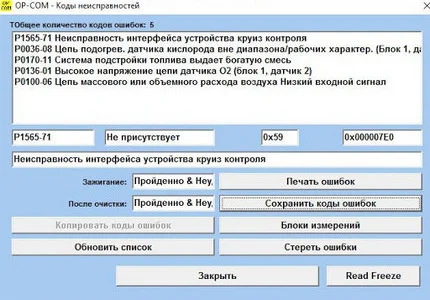 Выявленные ошибки круиза при диагностике сканером OP COM