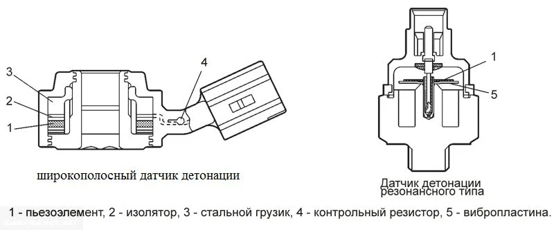 В двигателях автомобилей может использоваться один из двух типов датчиков фиксирующих детонацию — резонансные и широкополосные. Но поскольку первый вид уже устарел и встречается редко, то опишем работу именно широкополосных датчиков (ДД).