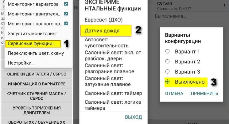 Если сенсор отключен на программном уровне, то для его активации потребуется диагностический сканер OBD-II и специальное ПО для вашего автомобиля. Для группы Fiat (Stellantis) это AlfaOBD, для VAG – ODIS или VAG-COM (VCDS), для BMW – BMWDiagnos и т. д. Также можно попробовать универсальные (мультимарочные) программы, как для ПК или ноутбука, так и смартфона или планшета (вроде ELMConfig, Car Scanner, Carista). Перед тем, как активировать датчик дождя, нужно: