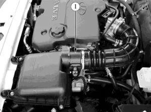 Расположение датчика массового расхода воздуха в подкапотном пространстве автомобилей семейств LADA 4х4: 1 – датчик массового расхода воздуха