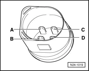 - Измерить сопротивление между контактами C + D на датчике тепературы охлаждающей жидкости G62. Заданные значения приведены на диаграмме;