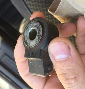 - Проверить датчик детонации. Для этого его нужно демонтировать и измерить его внутреннее сопротивление с помощью все того же электронного мультиметра, переведенного в режим измерения сопротивления (омметра). Его сопротивление должно составлять приблизительно 5 МОм. Если оно очень низкое, значит, датчик вышел из строя.