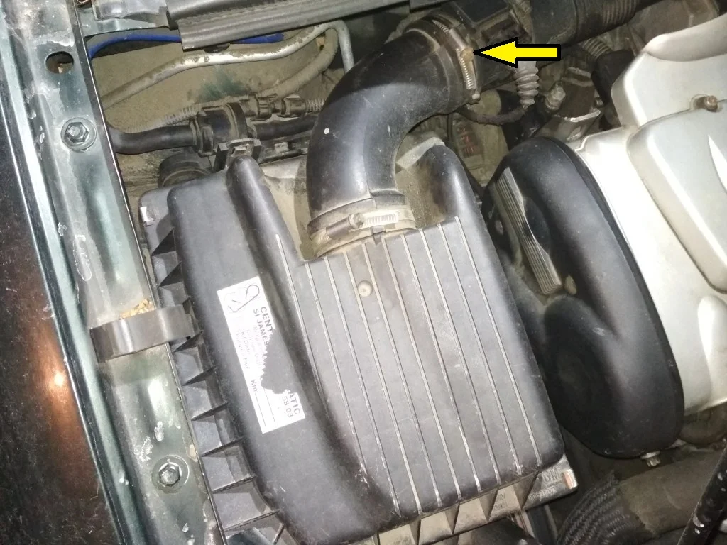 торцевой головкой на 7 мм ослабляем затяжку хомута воздуховода;