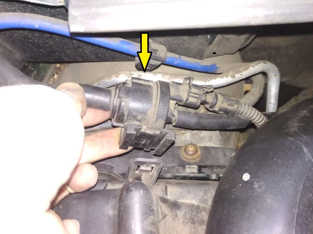 потянув вверх, снимаем с корпуса воздушного фильтра клапан продувки адсорбера;