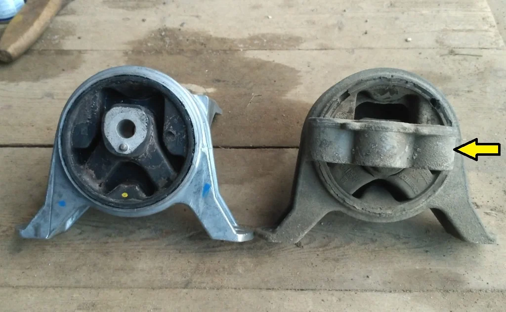 Признаком неисправности опор, или как ещё их называют “подушек” двигателя, является повышенная вибрация, которая передается на кузов автомобиля. Замене они подлежат как правило после 150-200 тысяч километров пробега. Но обязательно это надо проверить визуальным осмотром.