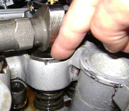 - Метод вдавливания. Это самый простой и распространенный метод проверки. Однако для его выполнения гидрокомпенсаторы необходимо вынуть с двигателя. После этого нужно деревянным брусом либо отверткой попытаться вдавить центральный шток компенсатора внутрь. Если компенсатор исправен и находится в более-менее нормальном состоянии — просто пальцем его продавить вряд ли удастся. И наоборот, шток неисправного компенсатора легко провалится внутрь.