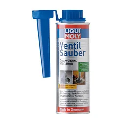 Присадка для очистки клапанов Liqui Moly Ventil Sauber является одной из наиболее популярных подобных средств. Это обусловлено ее чрезвычайной эффективностью. Представляет собой жидкость, которую добавляют в топливо. Она удаляет не только нагар на клапанах, но и удаляет отложения в системе питания, на форсунках, карбюраторе и элементах впускного тракта. Кроме этого, предотвращает образование коррозии на металлических поверхностях, причем как жидкостной, так и электролитической. Очиститель клапанов «Ликви Моли» может использоваться на любых типах двигателей, в том числе оборудованных катализаторами и турбонаддувом.