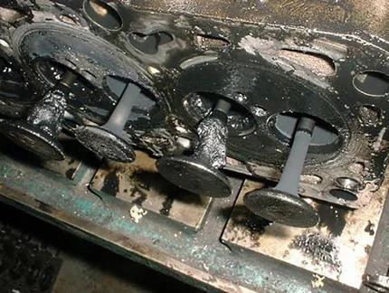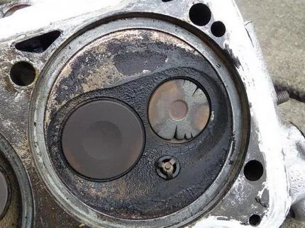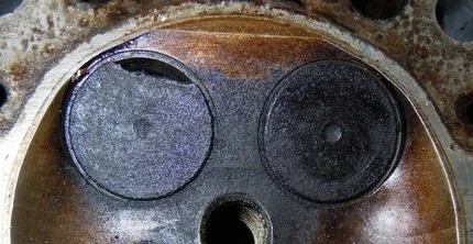 - Отложение нагара. В момент закрытия клапан плотно прилегает к седлу, которое участвует в отводе избыточного тепла. При образовании на их поверхности нагара теплопередача существенно ухудшается. Охлаждение только через шейку не столь эффективно. Кроме того, слой мешает клапанам полностью закрываться, в результате происходит прорыв горящей смеси во впускной или выпускной коллектор, усугубляющий перегрев.