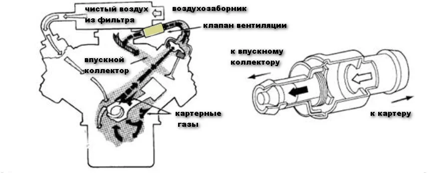 При выходе из строя клапана вентиляции картерных газов, они подаются во впуск в избыточном количестве, либо не поступают вообще. Причем в первом случае это обычно не фиксируется никакими датчиками, а во втором приводит к попыткам неоправданной коррекции топливовоздушной смеси.