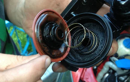 Незначительное замасливание поверхности КВКГ – естественный процесс. Однако если он становится в масле быстрее чем за 10 000 км – это повод для диагностики системы вентиляции картера. Не исключено, что забит маслоотделитель или вентиляционный шланг.