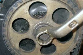 Провернуть коленвал еще на 40-50°( соответствует 2,5-3 зубьям шкива распредвала).