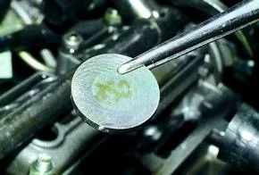 Н = В+(А–С), где А – замеренный зазор, В – толщина старой регулировочной шайбы, С – номинальный зазор, Н – получена по расчёт у толщина новой шайбы под толкатель.