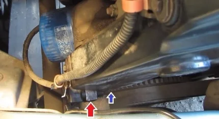 Расположение ДПКВ (красная стрелка) относительно маховика (синяя стрелка)