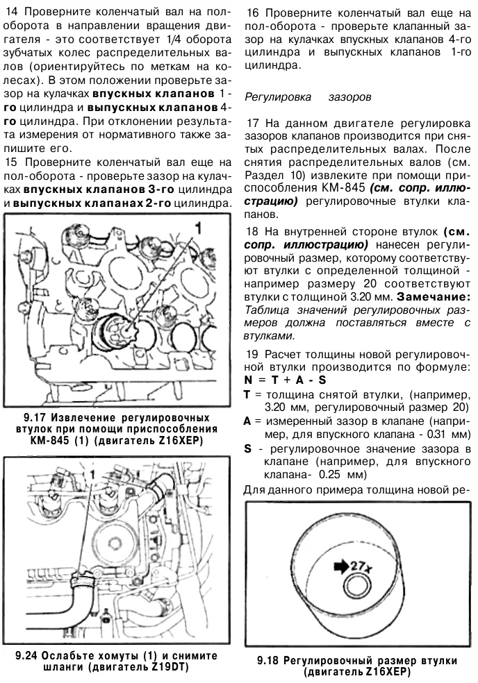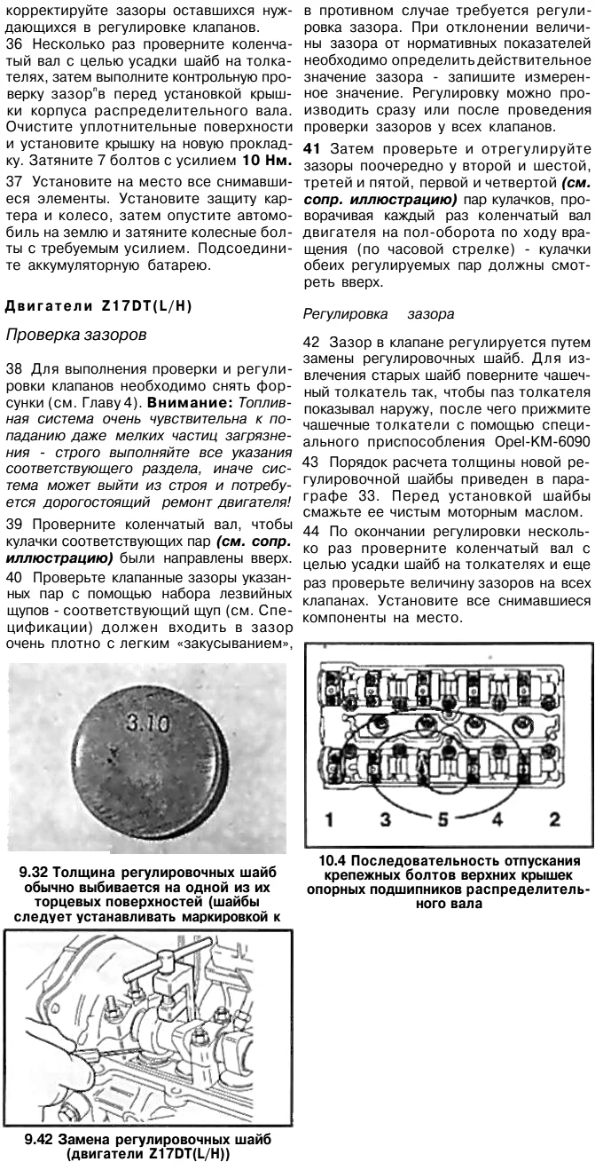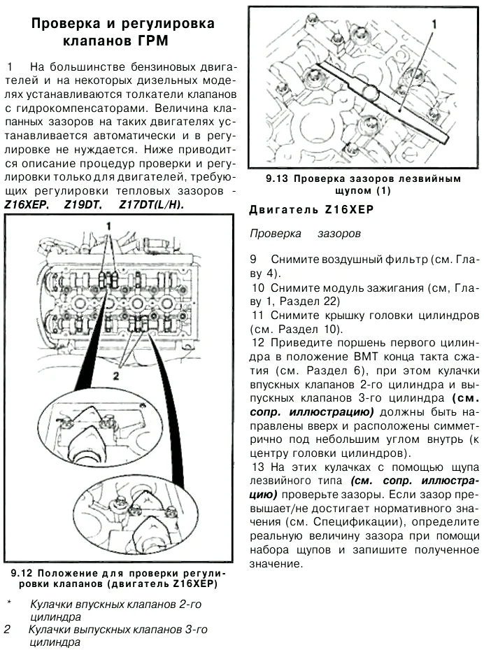 Проверка и регулировка клапанов Z17DT и 19DT