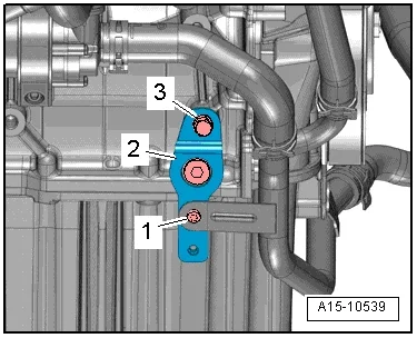 - Отвернуть болты 1 и 3, снять держатель 2 правой трубки охлаждающей жидкости;