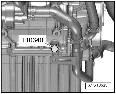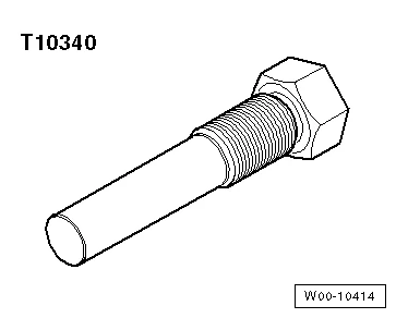 - Фиксирующий болт -T10340- должен быть до упора вкручен в блок цилиндров и затянут моментом 30 Нм;