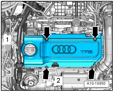 - Установить съемник T10094 A на все катушки зажигания стрелка, извлечь катушки зажигания и одновременно отсоединить электроразъемы катушек зажигания цилиндров 1… 4;