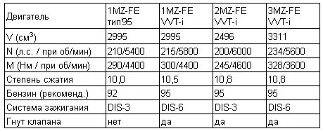 1MZ-FE, 2MZ-FE – эта серия должна была заменить серию VZ, это осталась та же серия VZ, но уже с устраненными недостатками.