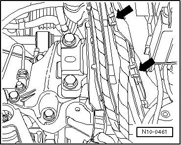 - Извлечь жгут проводов двигателя из направляющей и положить его на двигатель.