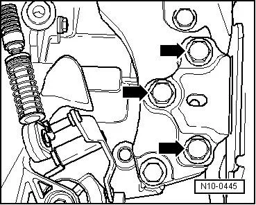 - Закрепить кронштейн -T10012- на блоке цилиндров с помощью болта M10x25, класс прочности 8.8, момент затяжки 40 Нм;