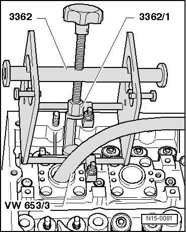 - Снять маслосъёмные колпачки с помощью съёмника -3364-.