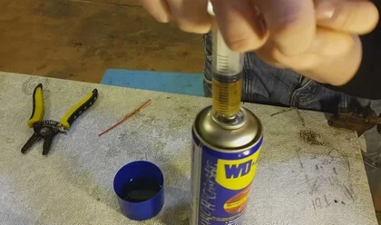 Приготовив проникающую смазку самостоятельно, остается открытым лишь один вопрос: «Как сделать её использование максимально удобным и приближенным к покупному средству»? Для этого, имеется проверенный метод – заправить жидкость в один из использованных баллончиков ВД-40, купленной когда-то в магазине. Или просто налить в бутылочку с распылителем (исключительно гаражный вариант) от дезодоранта, лекарства и т.д..