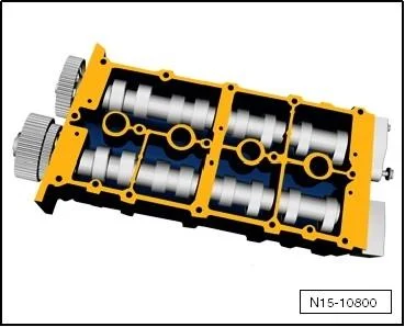 Перед установкой корпуса распредвалов необходимо ввернуть в головку блока цилиндров шпильки (M6 x 80). Шпильки облегчают установку корпуса распредвалов и предотвращают сползание роликовых рычагов с опорами.