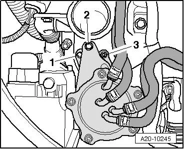 - Отсоединить разъём от дифференциального датчика давления -G505- и вывернуть винты крепления -1-;
