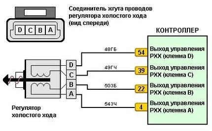 - Проверить значение сопротивления между всеми контактами регулятора холостого хода и «массой». Соответствующее значение должно находится в пределах 19…21 кОм или близким к нему. Если это не так — значит, имеет место слабое соединение в колодке жгута РХХ.