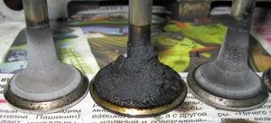 - Некачественное топливо. К сожалению, во многих марках отечественного топлива (как бензина, так и дизеля) есть большое количество вредных примесей (сера, свинец и прочие). При сгорании топливовоздушной смеси часть этих веществ переходит в смолистое состояние, и оседают в этом виде на поверхности деталей системы ГРМ, в частности, на клапанах. В том случае когда вы заправляетесь топливом с большим количеством различных присадок, в том числе и фероцен либо другая окись железа, что добавляется для снижения детонации, нагар на клапанах будет не черного, а красного цвета.