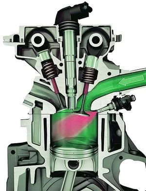 Однако большому нагару на впускных клапанах больше подвержены двигатели с так называемым непосредственным впрыском (обозначается английской аббревиатурой GDI). Эти моторы являются более современными и совершенными по сравнению с MPI, однако одним из их недостатков является именно образование нагара на их рабочих клапанах ГРМ. Почему это происходит? Конструкция двигателя GDI подразумевает подачу топлива в цилиндры напрямую. Это реализуется тем, что форсунка находится непосредственно в блоке цилиндров. А через впускной коллектор подается только чистый воздух. Таким образом, смешивание топлива и воздуха происходит непосредственно в самом цилиндре двигателя.