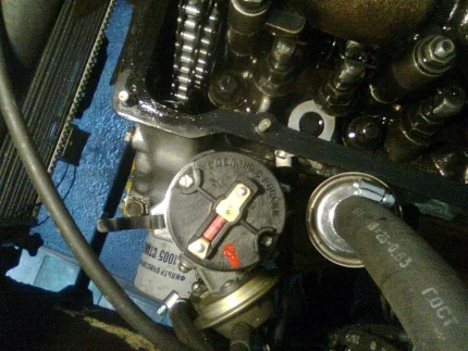 Регулировку зазоров можно контролировать по бегунку на трамблере. Изначально для этого требуется снять с него крышку. Выставив ВМТ 4-го цилиндра, можно сделать условную метку на корпусе трамблера.