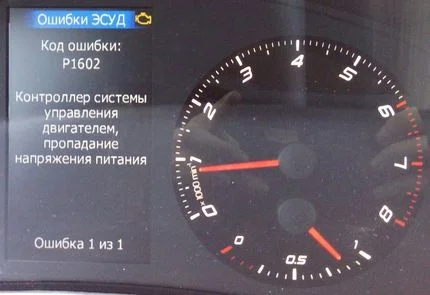 Ошибка р1602 означает, что на электронном блоке управления (сокращенно ЭБУ) на какое-то время пропадало питание. При этом важно различать — пропадало оно в аварийном режиме либо же санкционировано. Также возможен вариант, когда на отдельных участках электропроводки машины возникают проблемы, из-за чего пропадает питание на блоке управления. Например, это может быть реле, аккумулятор, генератор, обрыв проводов, перегрузка электросистемы потребителями и так далее.