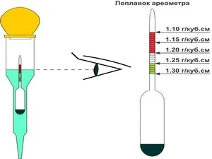 Алгоритм измерений плотности антифриза ареометром следующий:
