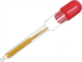 | 4 | Вымпел АР-02 5002 | Шкала до максимального деления 1,30, широкая, деления хорошо видно. Продается без чехла и груша немного воняет, однако цена самая низкая | Стеклянная колба, точно определяет плотность, груша герметично закреплена — не подсасывает воздух, тонкий носик | В комплекте нет футляра, резиновая часть изделия недолговечна, стекло слишком тонкое и есть риск разбить при неаккуратной эксплуатации | 160 |