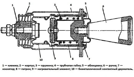Следующий элемент, который нужно внимательно осмотреть — это плавкий предохранитель на корпусе прикуривателя. Чаще всего он имеет изогнутую под 90 градусов форму и соединяет контакты прикуривателя. Если перегорел он, то проблему можно решить с помощью паяльника либо замены корпуса. В большинстве случаев достаточно припаять либо прикрутить кусок проволоки (алюминиевой сечением 1,5 мм2), которая и будет замыкать контакты и выполнять роль предохранителя.