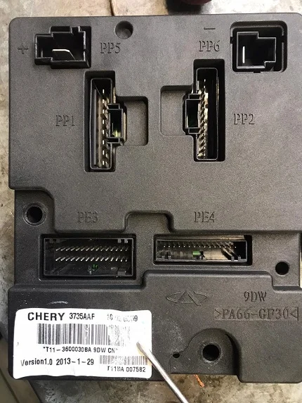 Если проблем с предохранителями и брелком нет, то скорее всего неисправность скрыта в блоке управления дверьми. Данная система является частью блока комфорта, который также называется ISU System. На блоке комфорта нанесена следующая маркировка: Chery 3735 AAF Tiggo (T11) 2013 / T1136000030BF Version 1.0 2013-1+-29.