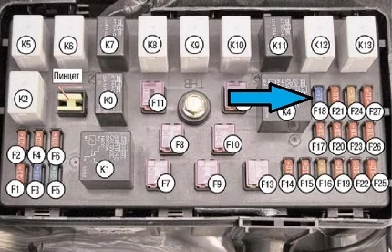 Первое, что на форумах предлагают проверять — предохранители. Их конечно же стоит проверить, но если бы вышел из строя предохранитель F18, то ЦЗ не сработал бы вообще. Также если бы закончился ресурс батарейки в брелке, то он бы не срабатывал. Но на всякий случай и элементы питания вы можете проверить, или заменить на новый.