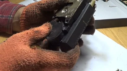 Сняв первую, самую большую шестерню, можно увидеть пластину с зубьями. Именно на нее воздействуют шестерни привода. В большинстве случаев на данной пластине откалывается один или несколько зубьев. В нашем случае откололся один зуб. Если снять подвижный механизм, то вы увидите что пластина со сломанным зубом держится в корпусе на небольшой пружинке, ее тоже можно снять.