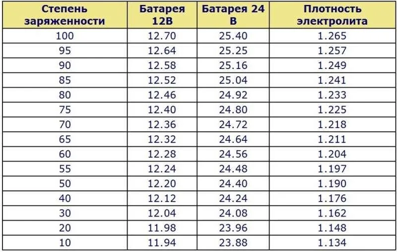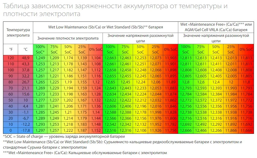 Проверить плотность можно и на разряженной батарее, но тогда для оценки ее состояния нужно сравнивать полученные значения с табличными.
