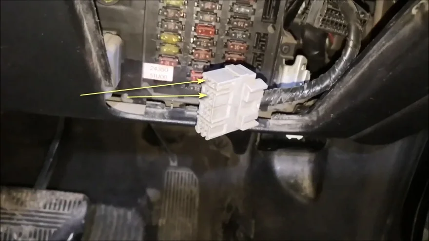 В блоке предохранителей находим нужный разъем и вставляем в два верхних контакта скрепку на несколько секунд.
