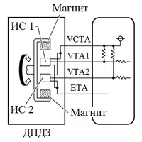 - Короткое замыкание между цепями VTA1 и VTA2. О нем говорит значительное отклонение (более чем на 0,2 В) напряжения 5 В. Решение — замена датчика.