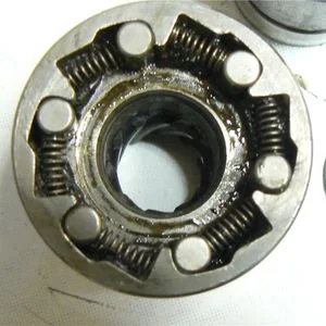 - Стачивание рабочих поверхностей ведущей или ведомой обоймы в тех местах, где они соприкасаются с роликами. В этом случае ремонт вряд ли возможен, поскольку такую выработку удалить невозможно. То есть, необходимо производить замену бендикса.