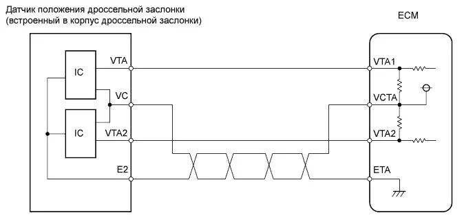Электрические цепи датчика. Самый простой и действенный метод диагностики заключается в использовании программного обеспечения для считывания неполадок с ЭБУ. Таких программ существует много, соответственно, интерфейсы у них тоже разные, поэтому описывать их работу не имеет смысла. С их помощью необходимо узнать напряжение на цепях VTA1 и VTA2 в различных ситуациях (в том числе аварийном режиме и на разных оборотах работы двигателя).