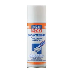 Является профессиональным очистителем контактов от всемирно известного немецкого производителя «Ликви Моли». Может использоваться не только в автомобильной технике, но и для ремонта и профилактики бытовой электротехники. Очень эффективно очищает загрязненные контакты, удаляет окислы, уменьшает контактное сопротивление. В его состав не входит силикон! По инструкции время действия очистителя составляет 5…10 минут (зависит от уровня загрязнения). Удалять грязь/коррозию нужно с помощью салфетки или ветоши. Подключать очищенный контакт к работающей электросхеме можно не раньше чем через 10 минут после завершения чистки!!! Обратите внимание, что Liqui Moly Kontaktreiniger является узкоспециализированным средством и предназначено лишь для очистки контактов. Поэтому после его использования желательно воспользоваться защитным средством наподобие широко популярного Liqui Moly Elektronik-Spray.